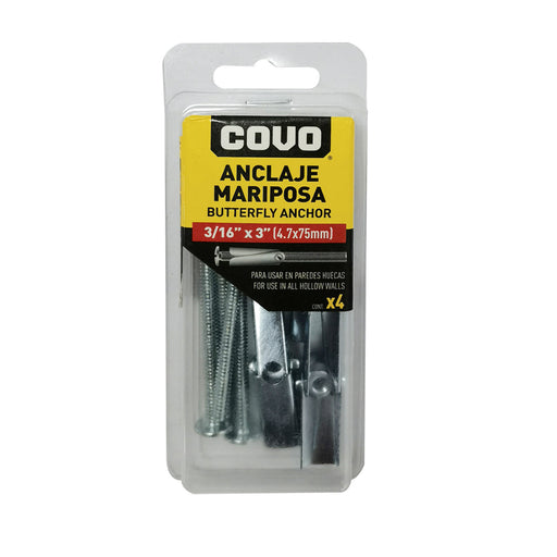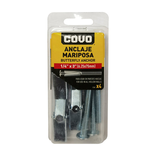 ANCLAJE MARIPOSA COVO 4 PIEZAS 0.25plg.X3plg. (F. 144 SETS)