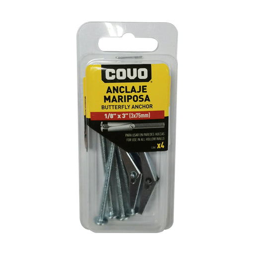 ANCLAJE MARIPOSA COVO 4 PIEZAS 0.125plg.X3plg. (F. 144 SETS)