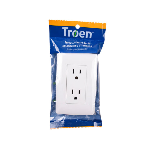 TOMACORRIENTE TROEN POLARIZADO DOBLE SOBREPONER BLANCO (F. 200 PZA)