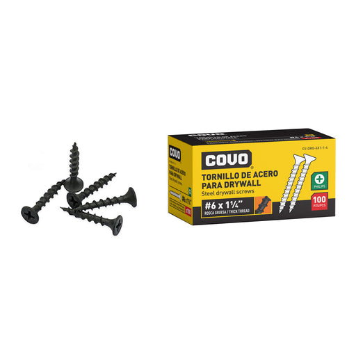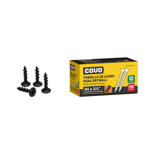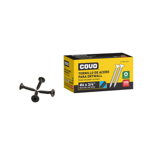 TORNILLO DE ACERO COVO PARA DRYWALL 6X1" 100 PIEZAS ROSCA FINA