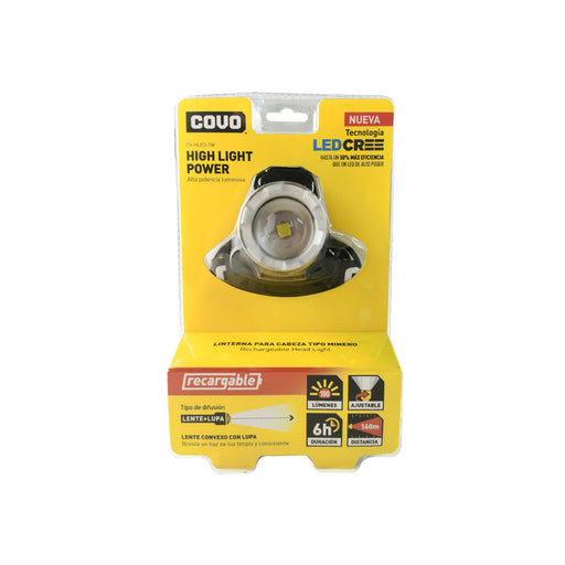 LINTERNA LED COVO PARA CABEZA TIPO MINERO RECARGABLE