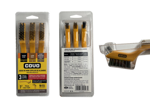 JUEGO DE MINI CEPILLOS DE ALAMBRE COVO NYLON-LATON-ACERO INOXIDABLE 7" (F. 72 SETS)