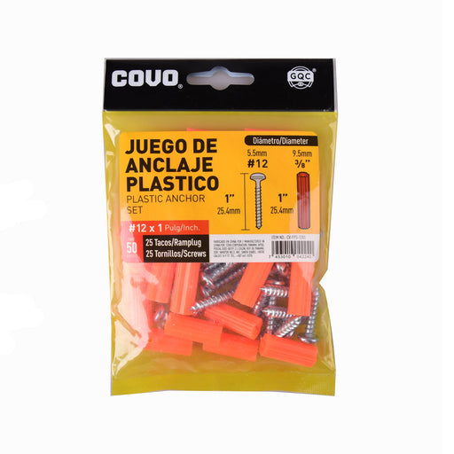 JUEGO DE ANCLAJE PLASTICO COVO #12X1plg. 50 PIEZAS (F. 144 BAG)