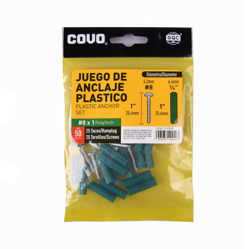 JUEGO DE ANCLAJE PLASTICO COVO #8X1plg. 50 PIEZAS (F. 168 BAG)
